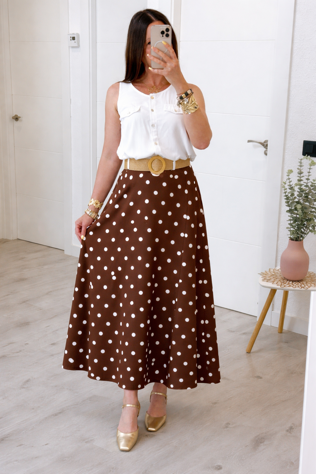 FALDA LUNARES CON CINTURÓN CHOCOLATE
