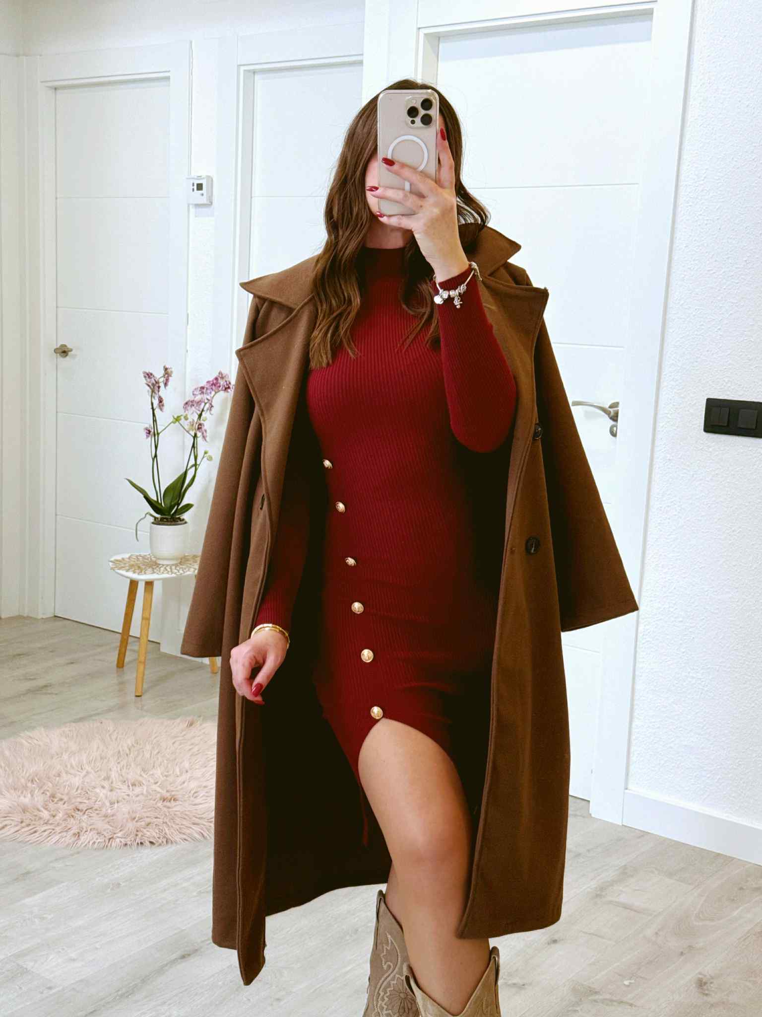 VESTIDO DE PUNTO CANALÉ BOTONES GRANATE