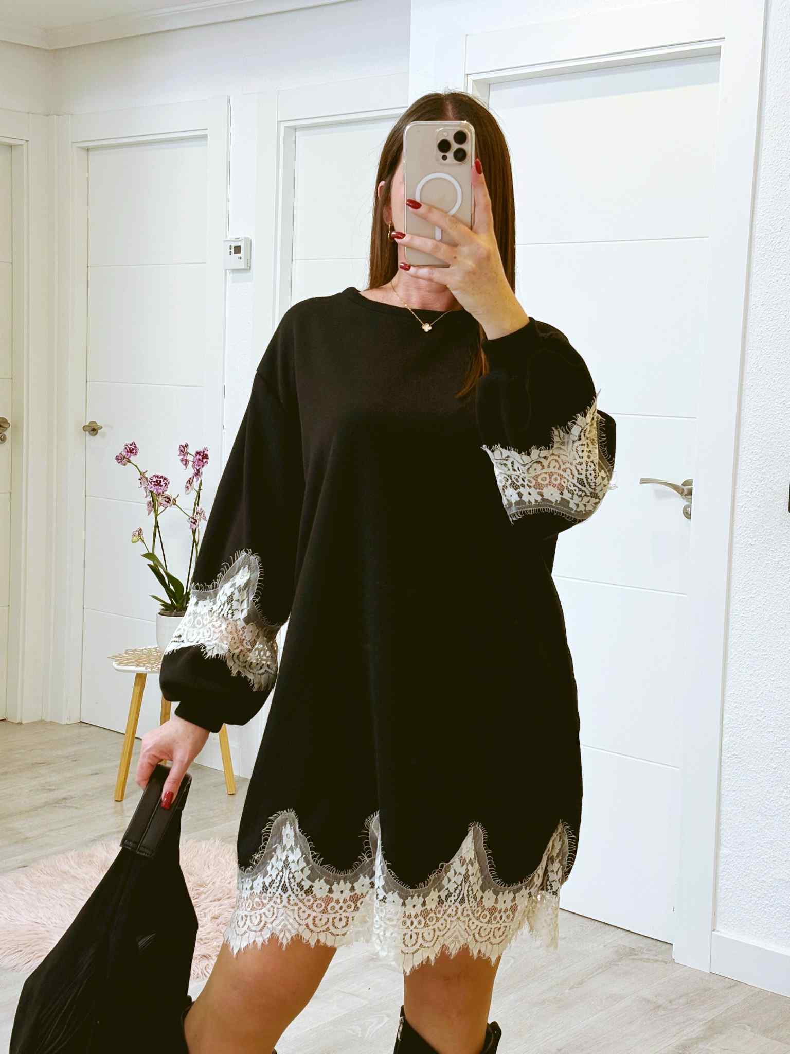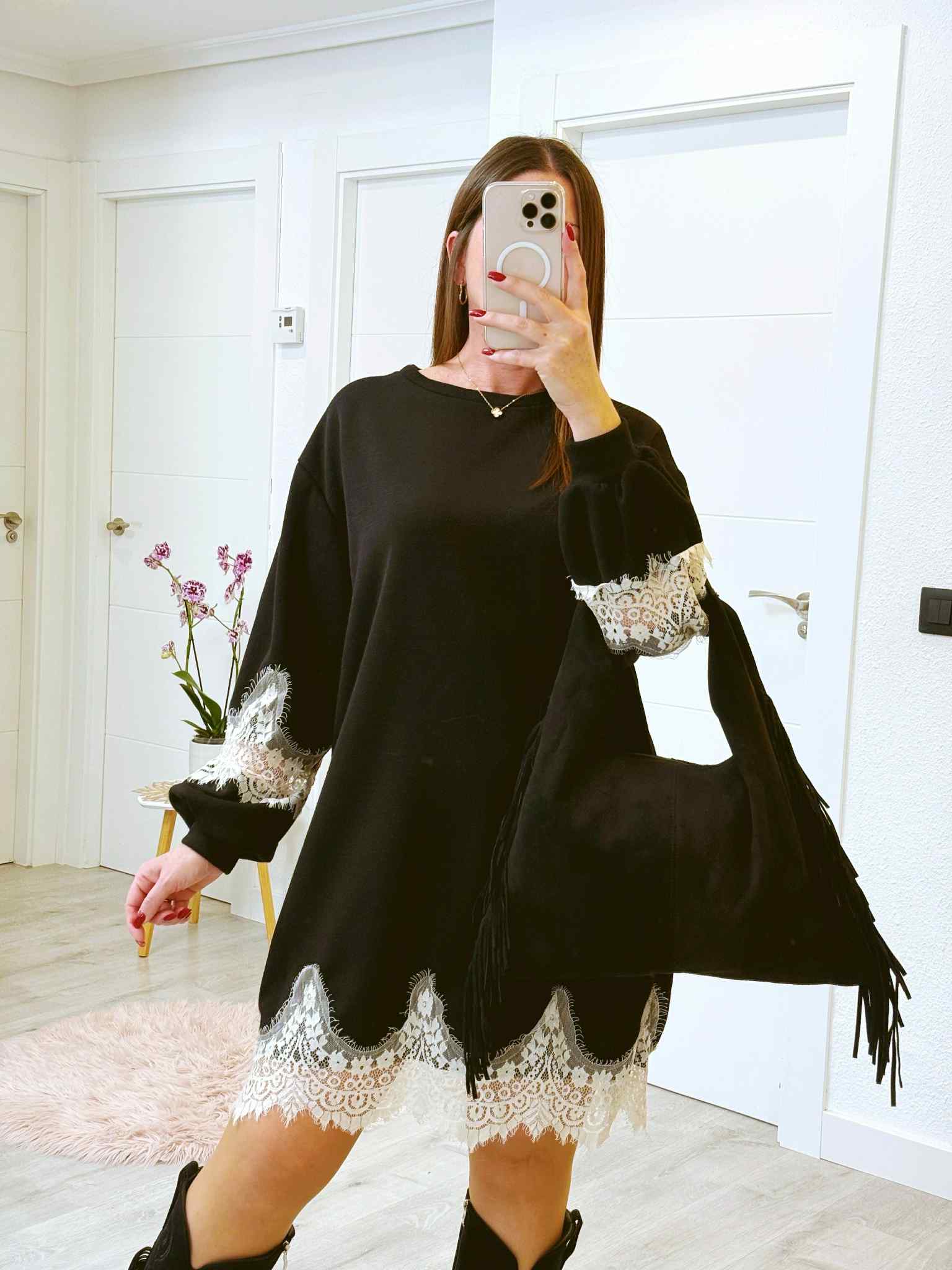 VESTIDO PARIS NEGRO CON ENCAJE Y OVERSIZE